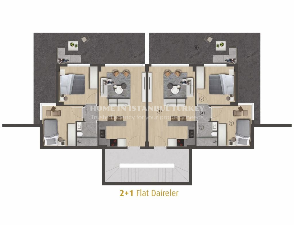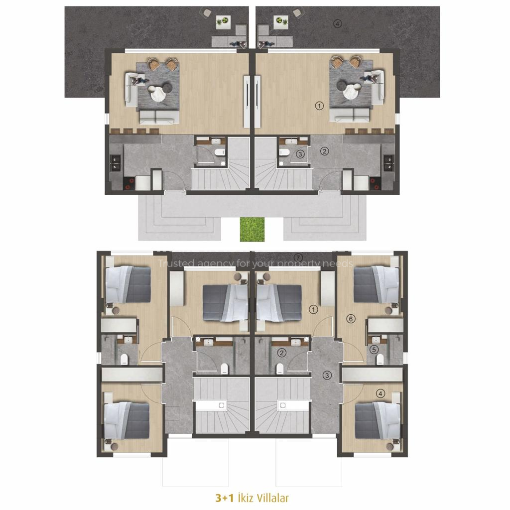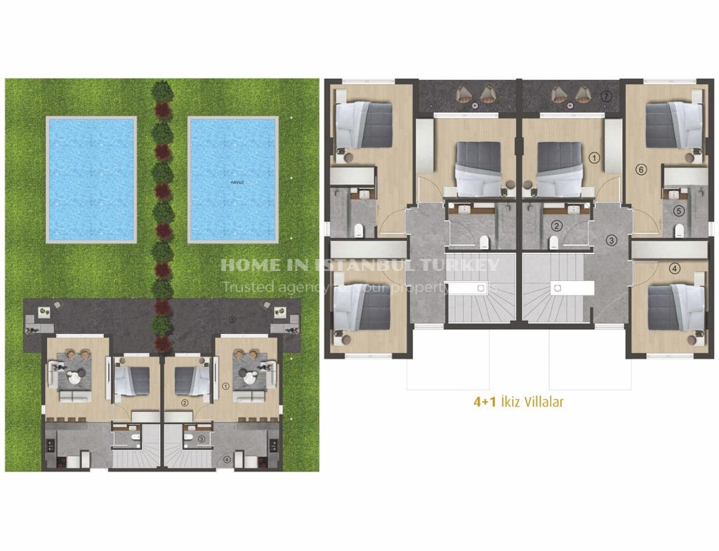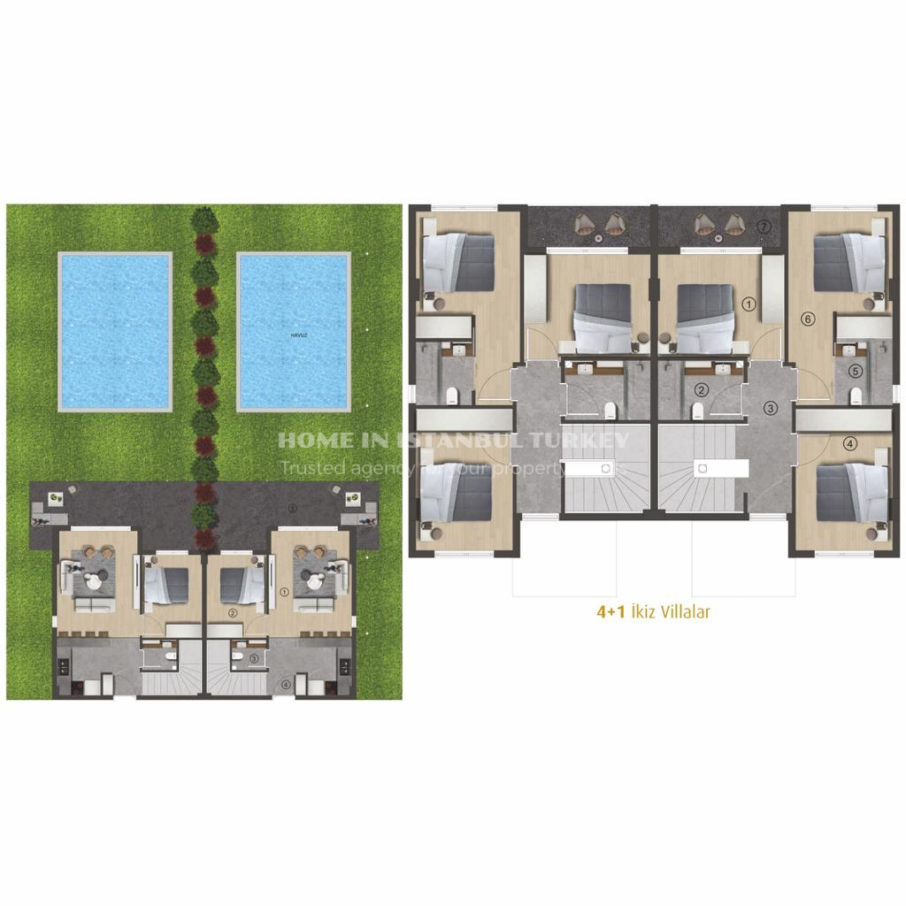 Hayal Bodrum consists of 119 modern and spacious 2+1 flat apartments, 60 comfortable and stylish 3+1 twin villas and 20 4+1 villas with private pools. Each of the villas has been carefully designed with details that reflect your taste. The spacious and bright atmosphere in the interiors invites you to a peaceful life.