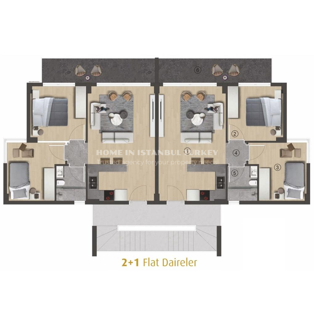 It is much more than a project with its reception service, housekeeping, dry cleaning, gym, poolside Cafe&Restaurant area, eye-catching pool with its stylish architecture, walking areas opening to nature, its own beach and residences designed with a perfect vision.